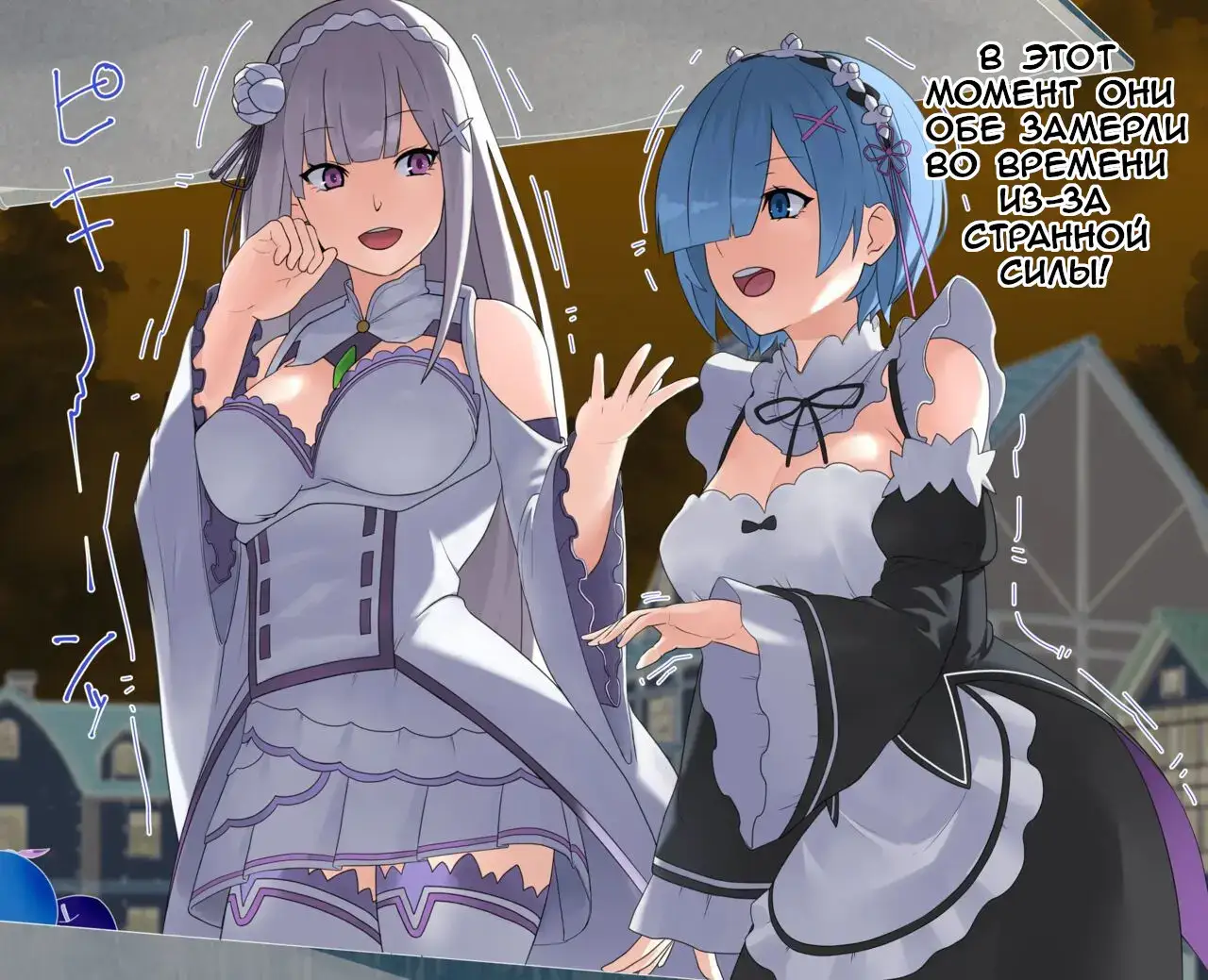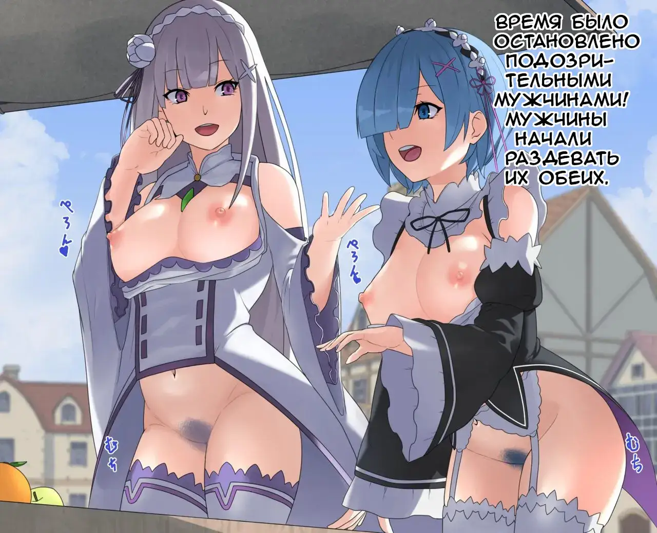 [カラス] レムとエミリアが時間停止されて犯されちゃう (Re:ゼロから始める異世界生活) [ロシア翻訳]