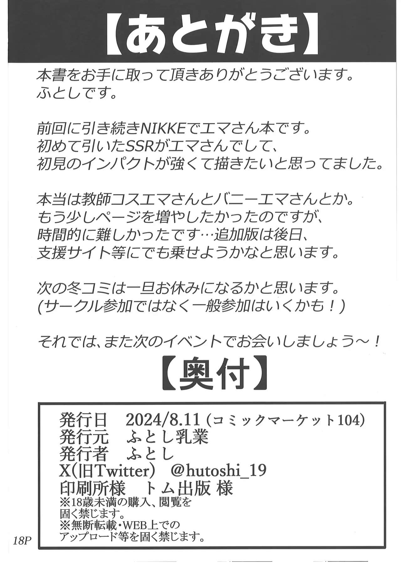 (C104) [Hutoshi Nyuugyou (Hutoshi)] Ama Ema Therapy (Goddess of Victory: Nikke)