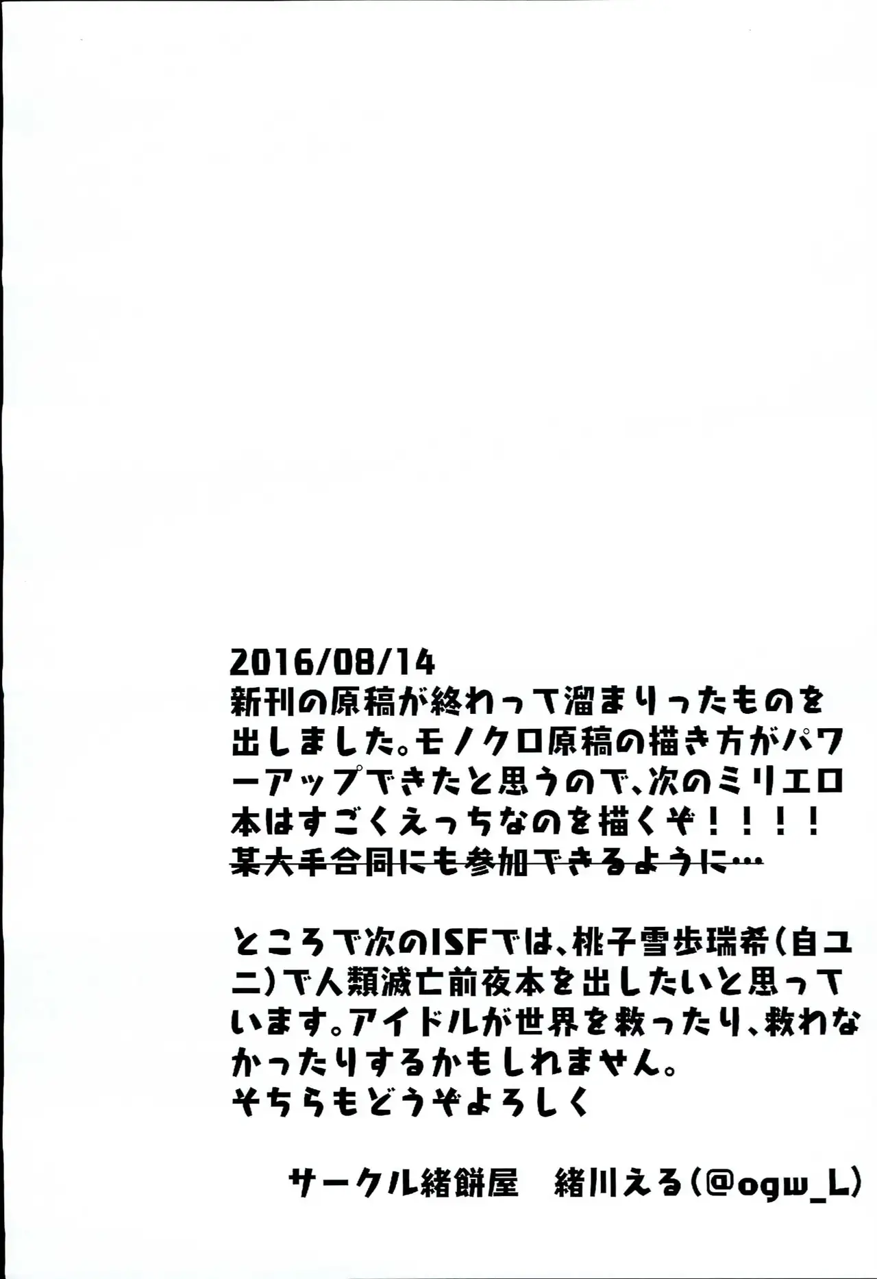 (C90) [緒餅屋 (緒川える)] ミリエロ突発モノクロイラスト本 (アイドルマスター ミリオンライブ!)