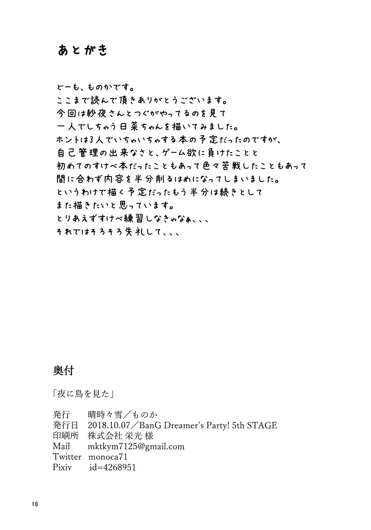 (BanG Dreamer's Party! 5th STAGE) [晴時々雪 (ものか)] 夜に鳥を見た (BanG Dream!)