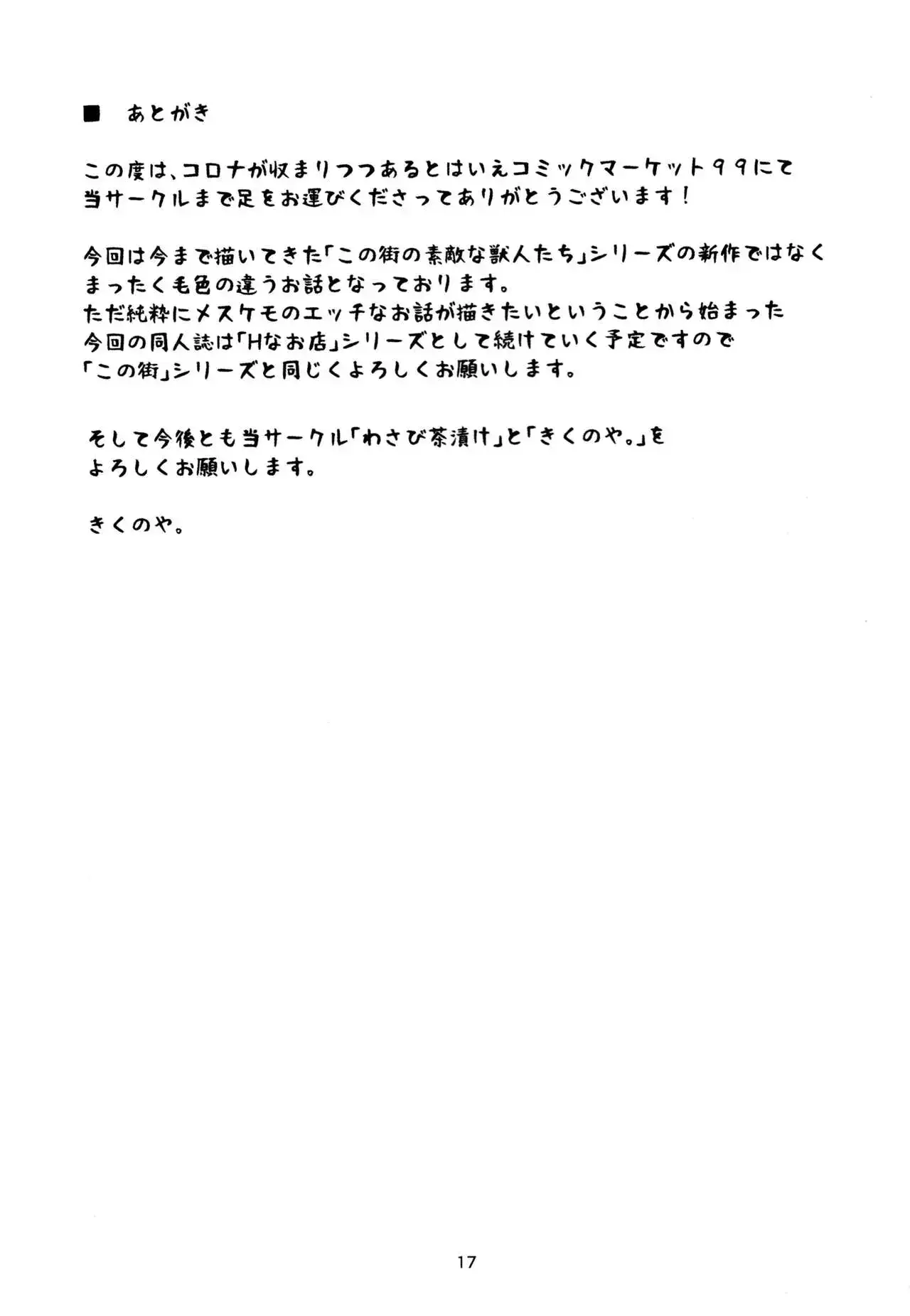 (C99) [わさび茶漬け。 (きくのや。)] Hなお店でむっちりメスケモに「甘える」お話